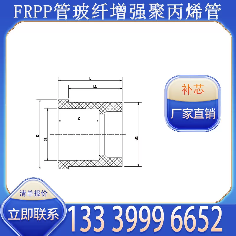 产品使用场景广泛,适用于化工行业轻度腐蚀液体管道异径衔接、食品加工行业清水管路变径对接、市政工程辅助排水管尺寸过渡、制药厂低浓度溶液管路口径调整等,能适配室内设备管路或室外浅埋管道安装。目前厂家支持批量批发,价格具备优势,有意采购 FRPP 补芯的客户,可直接拨打联系方式 13339996652 咨询详情。